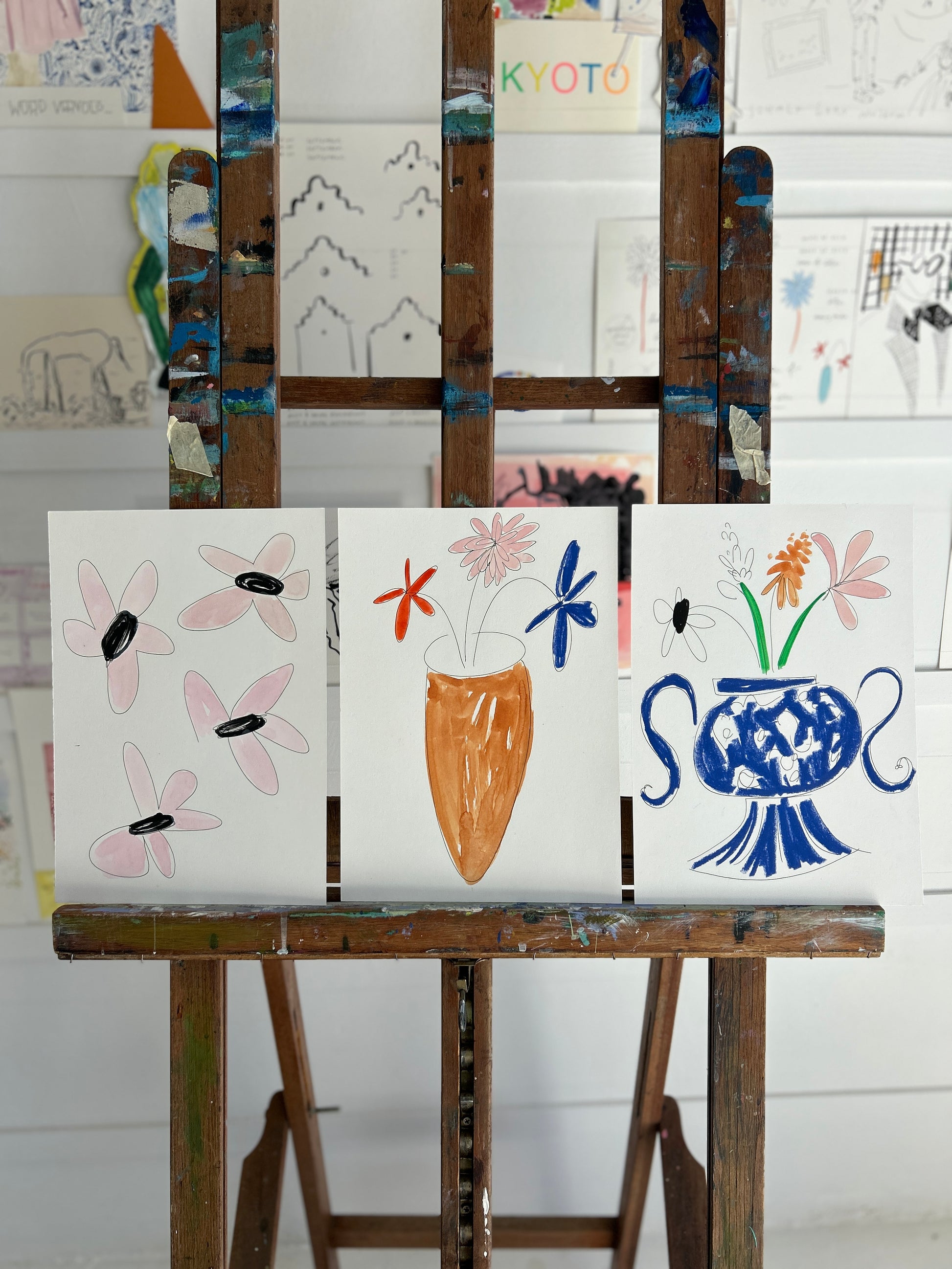 x3 A4, mixed media floral works on Hot Pressed Watercolour paper.